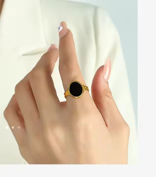 Black Oval Onyx Ring (Adjustable) - 18k Gold Plated