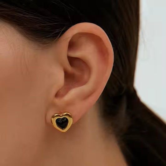 Enamel Heart Studs Earrings - 18K Gold Plated