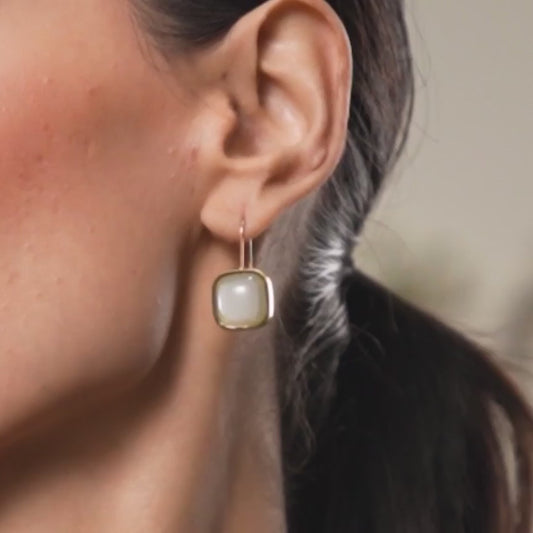 Pearl Drop Hoop Earrings - 18K Gold Plated