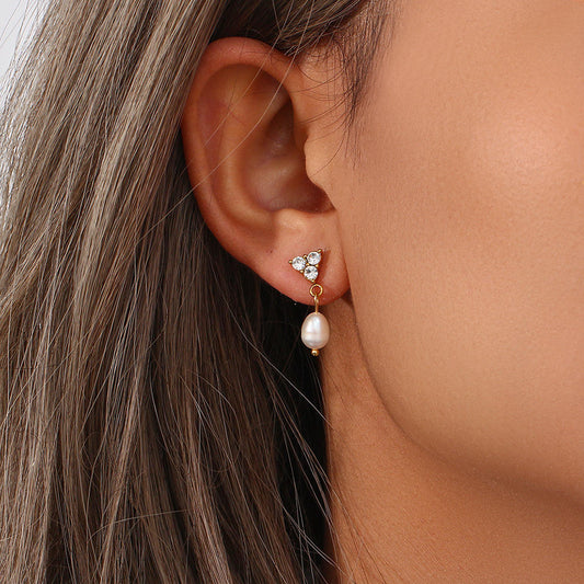 Pearl Trio Drop Studs Earrings - 18K Gold Plated