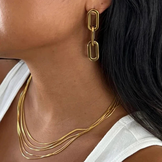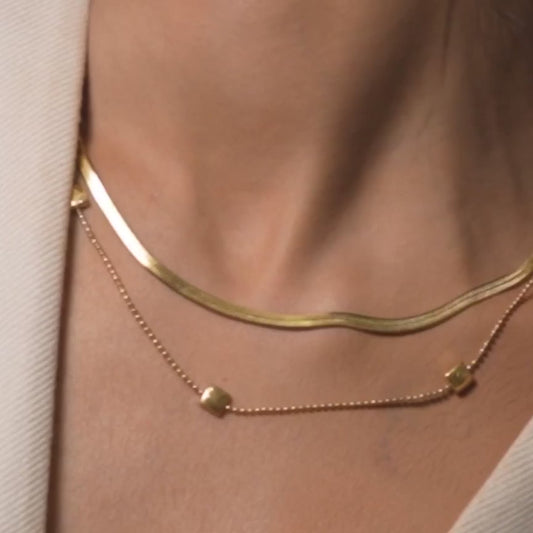 Layered Herringbone Chain Necklace - 18K Gold Plated
