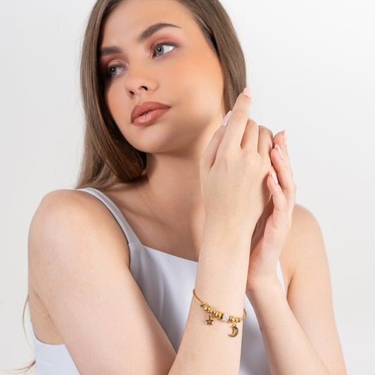 Moon Star Charms Magnetic Bracelet Bangle - 18K Gold Plated