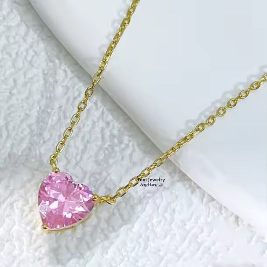 Pink Heart Stone Dainty Necklace - 18K Gold Plated