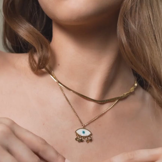 Evil Eye Herringbone Multilayer Necklace - 18K Gold Plated