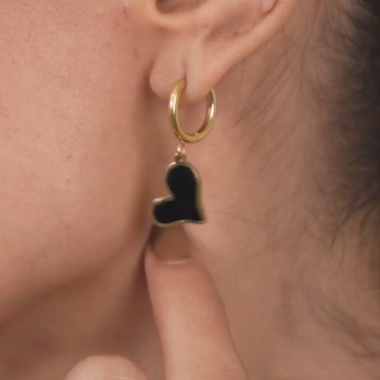 Black Heart drop Earrings - 18K Gold Plated