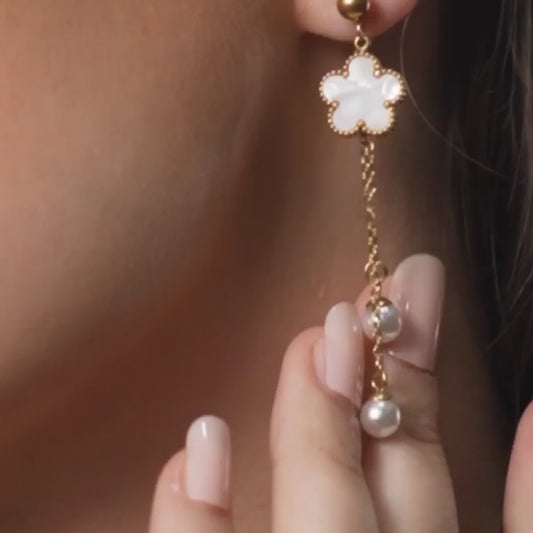 White Clover Thread Earrings - 18K Gold Plated