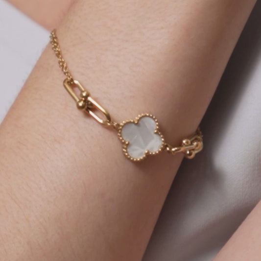 Classy Clover White and Gold Bracelet - 18K Gold Plated