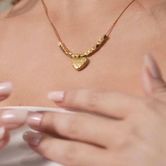 Statement Gold Bar Hearty Necklace - 18K Gold Plated