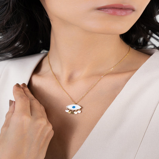 Evil Eye Herringbone Necklace - 18K Gold Plated