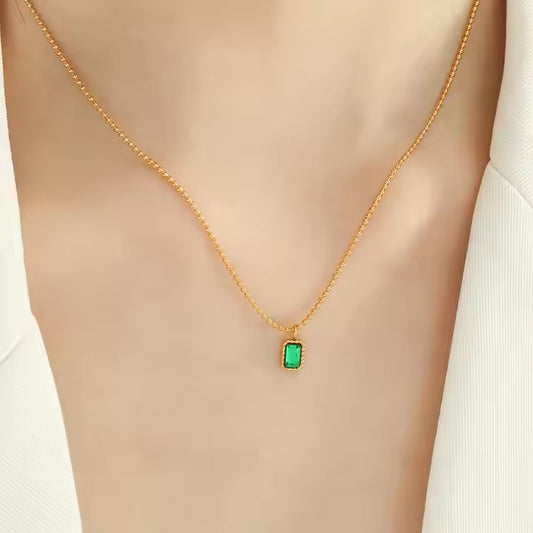 Clavicle Gemstone Bar Necklace - 18K Gold Plated