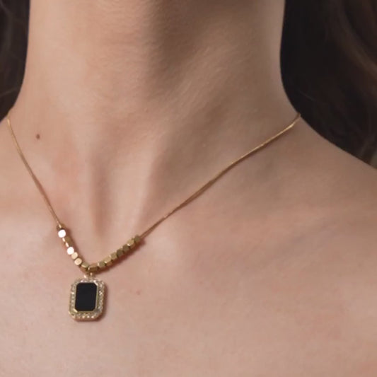 Black Onyx Multilayer Necklace - 18K Gold Plated