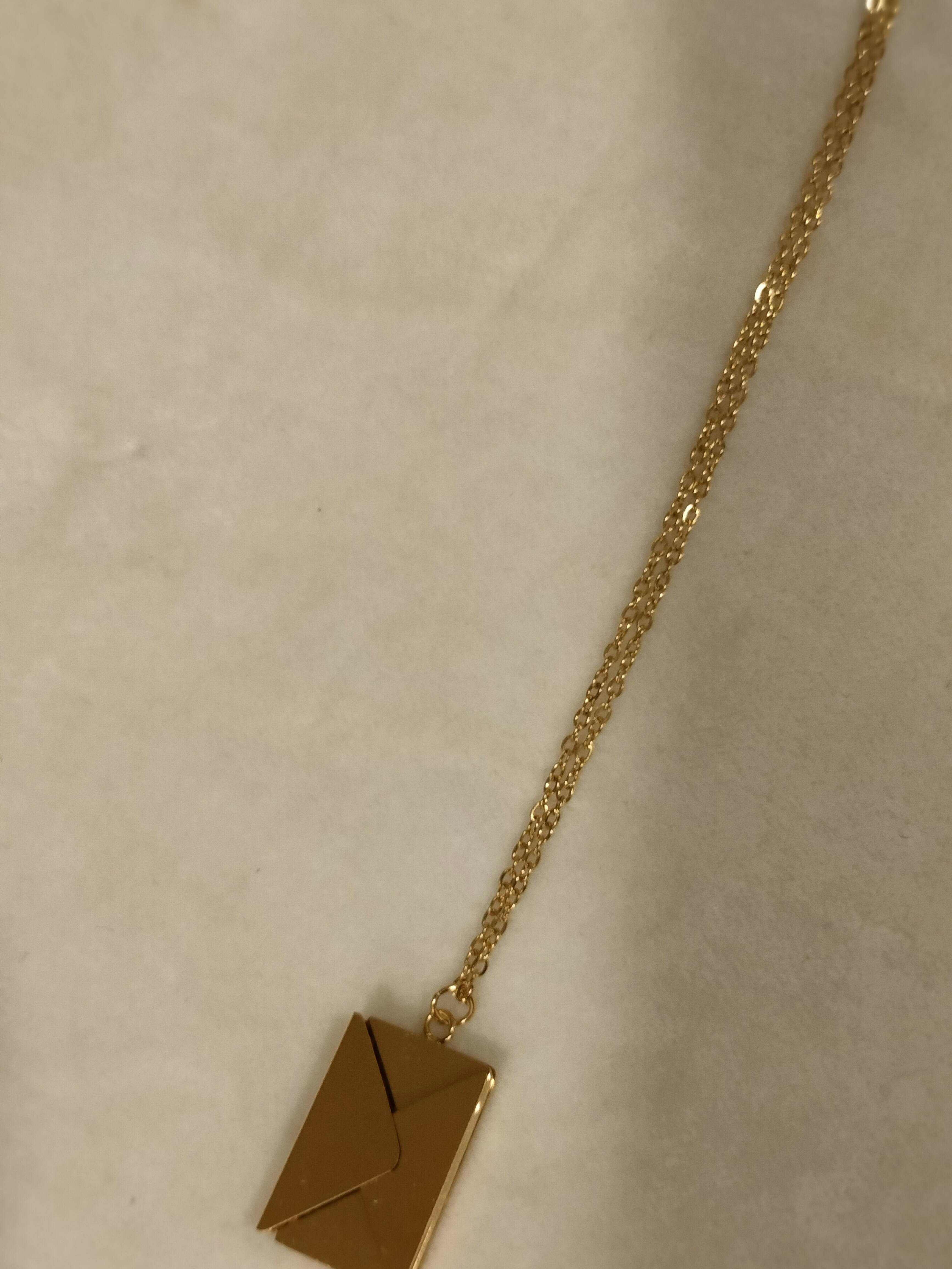 Express your style with our Classy Envelope ILY Pendant Necklace. This elegant piece features a unique envelope design with the letters "ILY" (I Love You) on a delicate gold chain necklace. Crafted with premium materials, this gold pendant adds a sophisticated touch to any outfit. Order yours today!