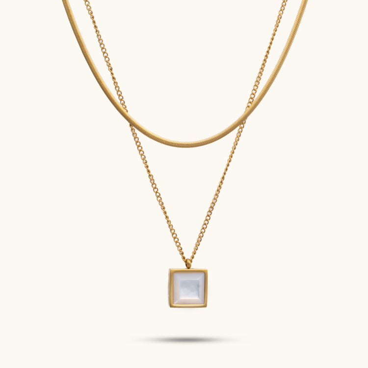 Enamel Layered Herringbone Necklace - 18K Gold Plated