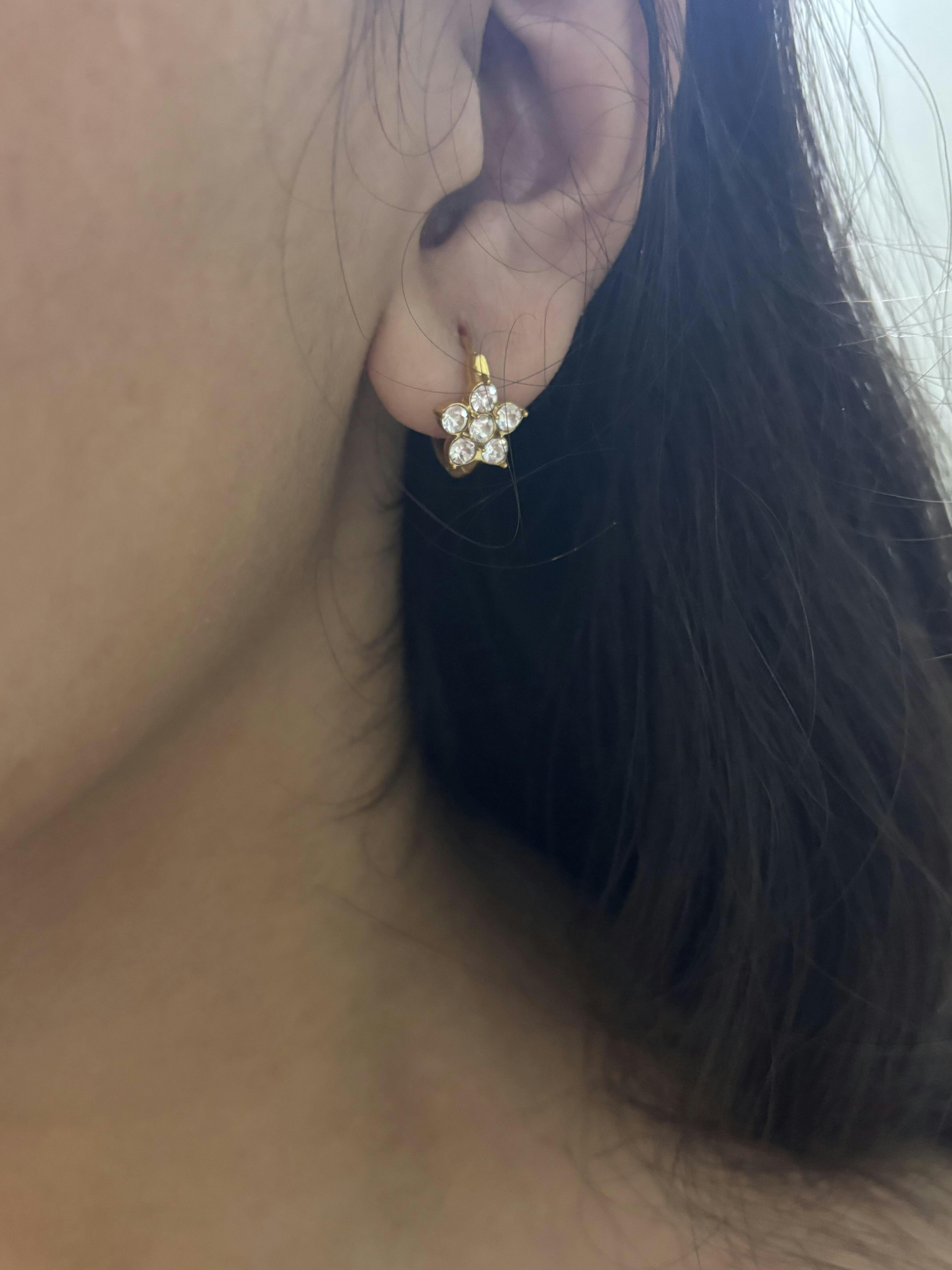 Enhance your beauty with our exquisite Flazo Flower Huggies Earrings Earrings - 18K Gold Plated. Handcrafted with precision, these earrings feature delicate flower designs and shimmering zircon stones, plated in 18K gold for an elegant touch. Elevate your style and make a statement with these luxurious earrings.