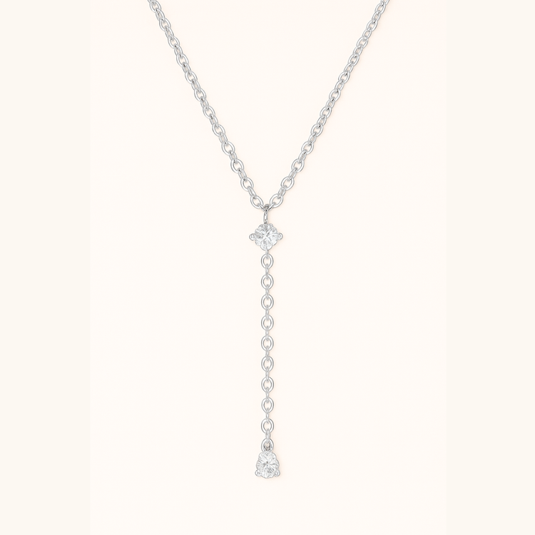 The Halo Drop Necklace features a sleek silver drop framed by a delicate halo detail — subtle yet striking. Designed to elevate everyday outfits.