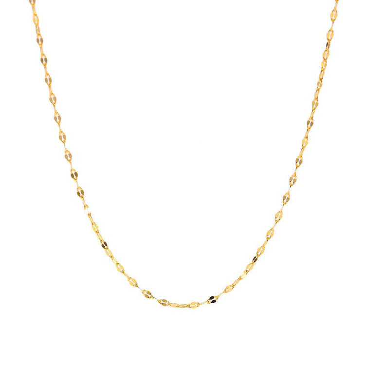 The Lip Chain is designed for those who appreciate understated luxury. With its smooth, fluid texture and subtle reflective shine, this chain beautifully contours the neckline and complements every outfit — from crisp office shirts to casual weekend looks.