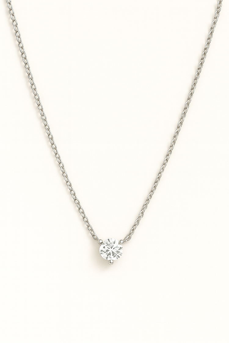 The Luna Solitaire Necklace captures the quiet magic of a single, radiant stone — elegant, refined, and timeless.