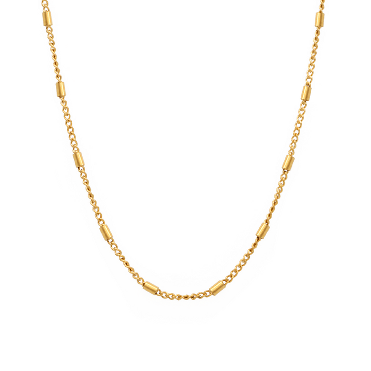 The Orra Beads Necklace is a timeless piece designed for effortless elegance. Featuring finely polished golden beads along a delicate chain, it adds a hint of sparkle that’s perfect for both daily wear and special occasions.