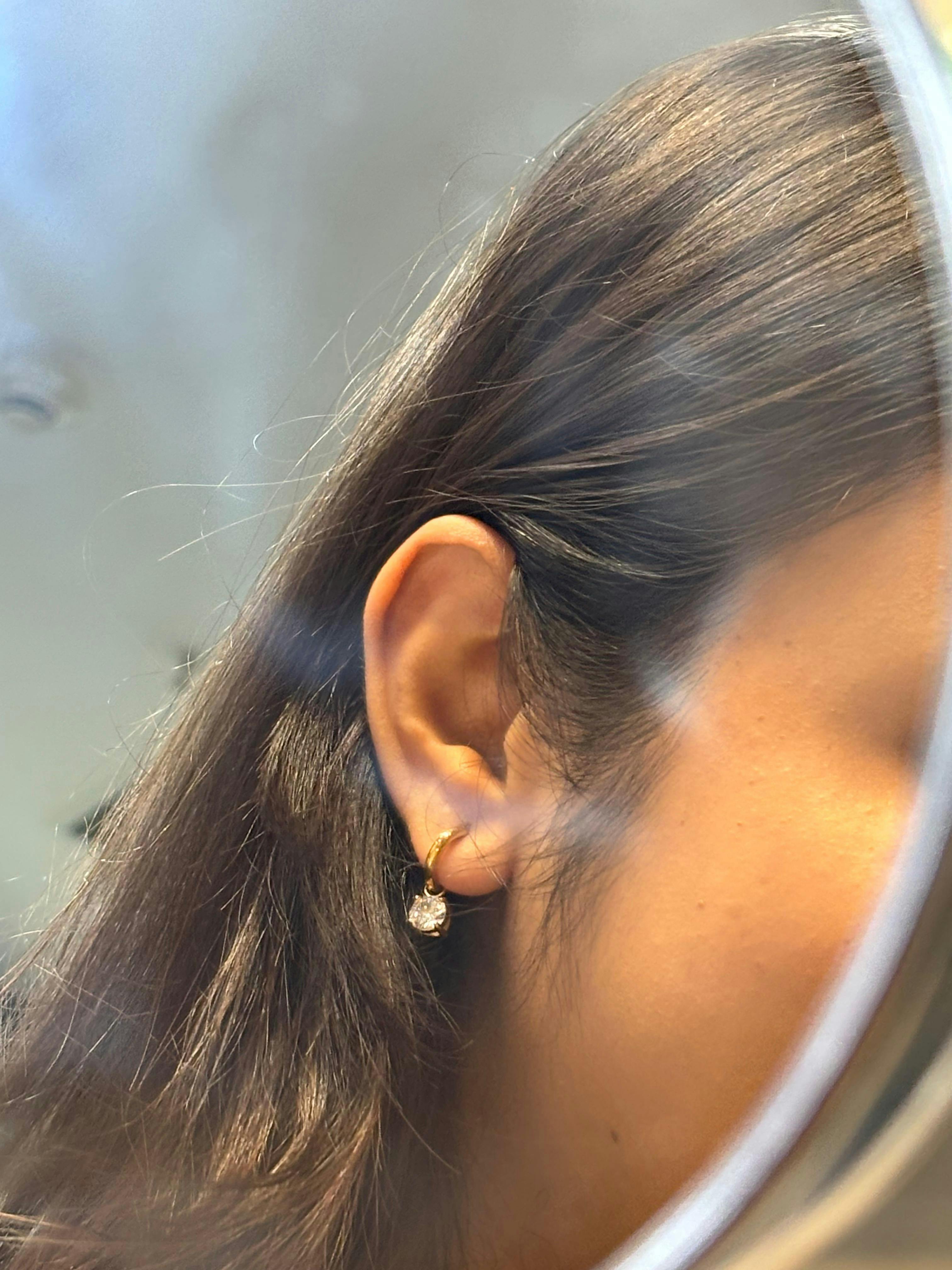 Pluna Hoop Solitaire Earrings - 18K Gold Plated